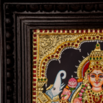 The painting showcases intricate craftsmanship with embossed detailing, vibrant flat colours, and a radiant gold finish. Created in the authentic Thanjavur tradition, each piece is meticulously handmade by skilled artisans, preserving the heritage and timeless beauty of Tanjore art.